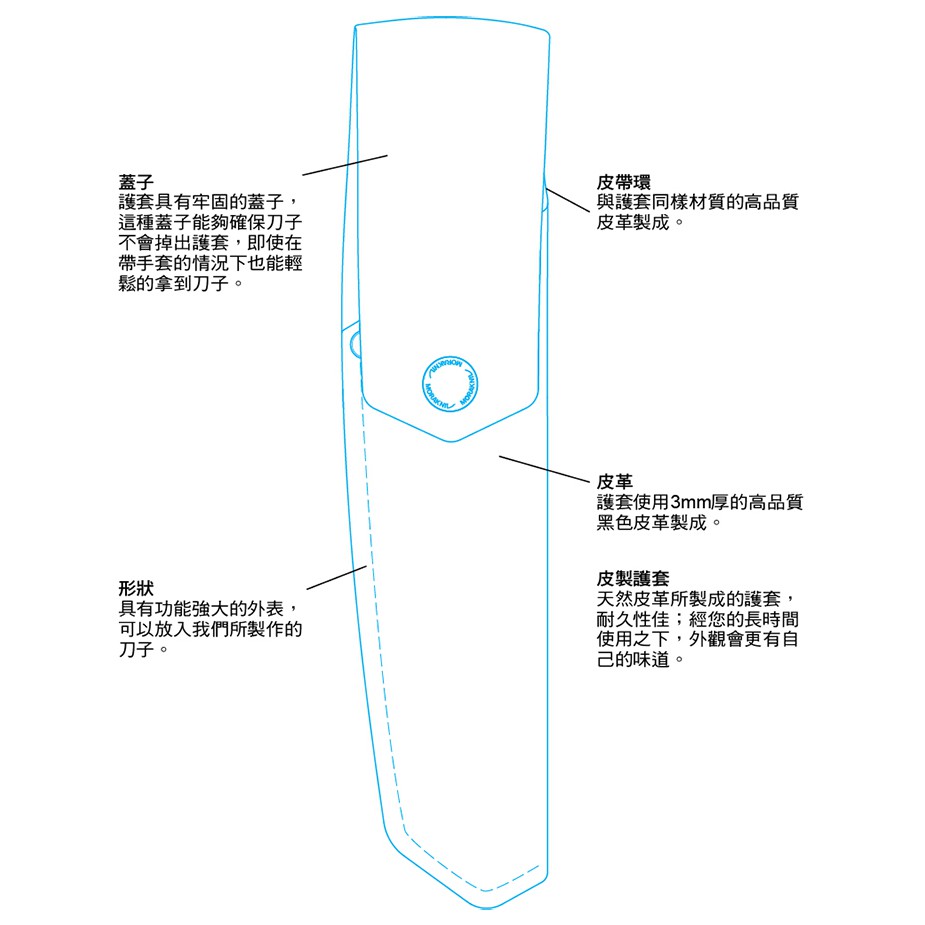 附皮革護套,以厚度3.2 mm,高品質黑色皮革製成。