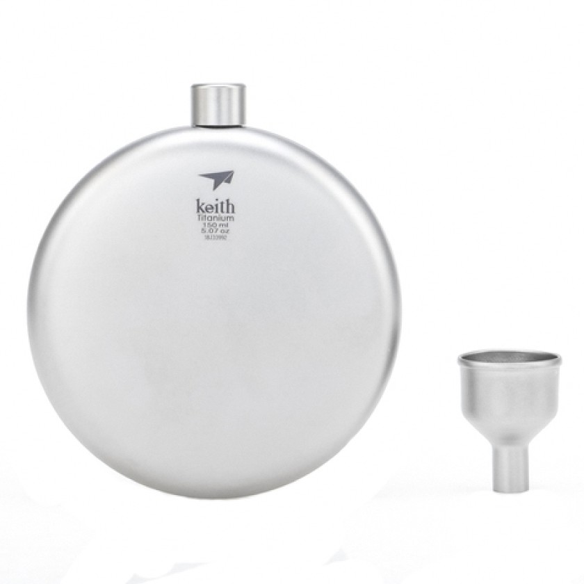 Keith 鎧斯 150ml 純鈦戶外便攜扁圓形酒壺 附小漏斗 Ti9302