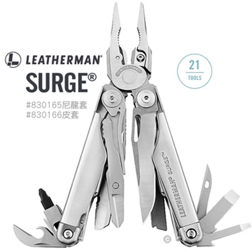 Leatherman 美國 [25年保固] Surge 不銹鋼多功能工具鉗 黑尼龍套 銀 LE 830165
