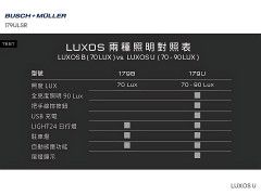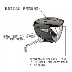 照度輸出:70 - 90 Lux!照明光場均勻程度最大化,且照明區域比先前的 IQ 技術更大上數倍。其他照明功能如:近距全景照明、日行燈、可切換為洪荒之光模式,以對抗最為漆黑的夜晚。而且它不僅只是一組普通的頭燈:可選配具有 USB 接頭的款式,為行動裝置充電,由內建的鋰電池供電。也有提供單純輸出 70 Lux 照度的標準版。