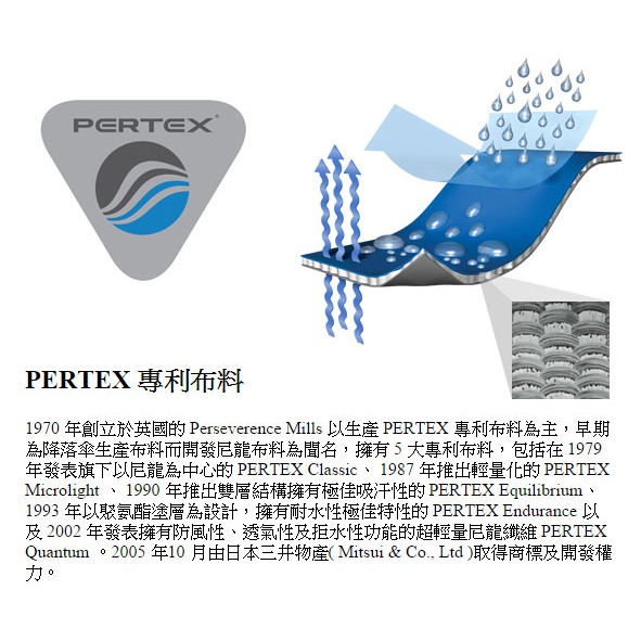 材質 :表布 Pertex Quantum 20d 100% Nylon Ripstop DWR