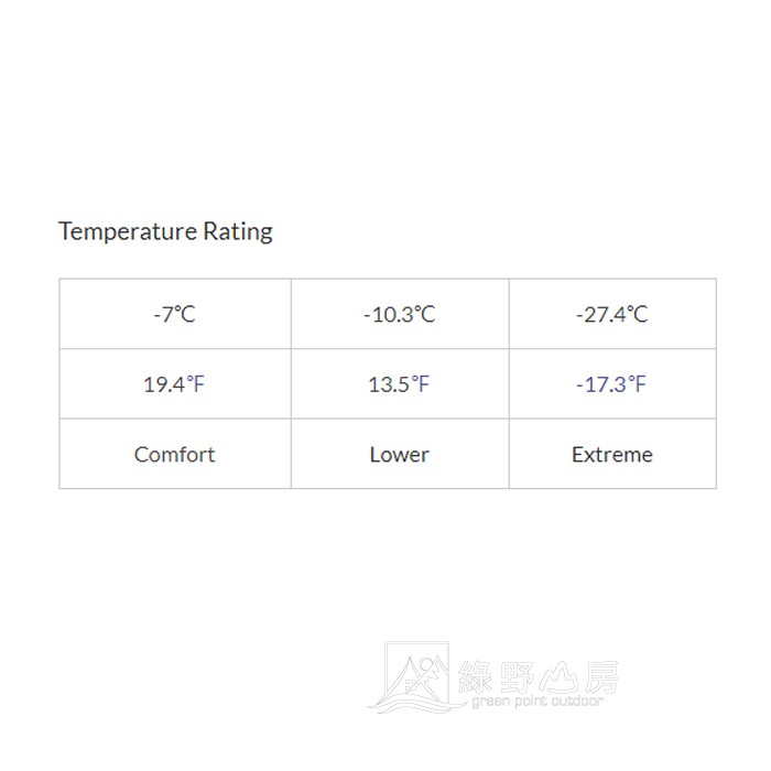 舒適溫度:-7 ℃