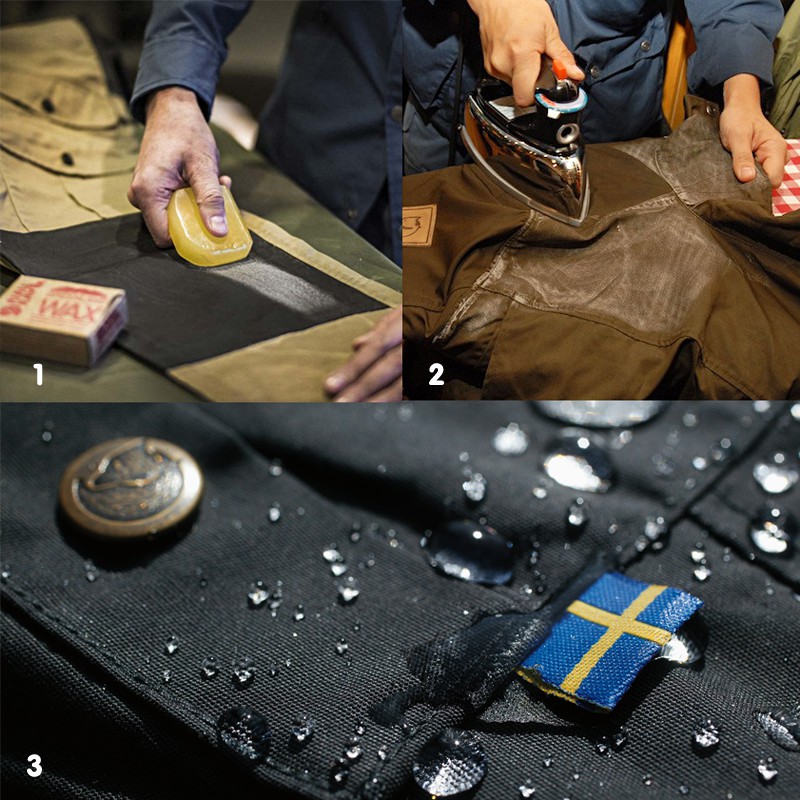 ● 專為G -1000®材質所設計的Greenland Wax蠟塊,可透過吹風機或熨斗加熱的方式讓G -1000®面料吸收,可依個人習慣及環境因素決定上蠟的次數,提升不同程度的防潑水性及防風性。