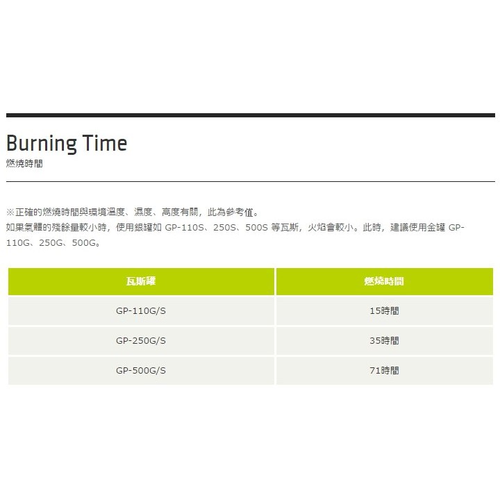專用瓦斯罐:GP-110G, GP-250G, GP-500G, GP-110S, GP-250S, GP-500S