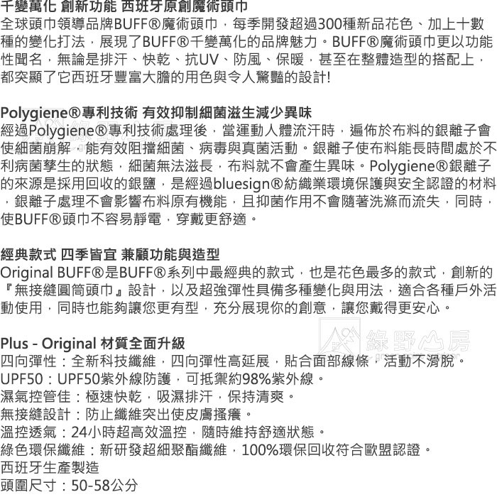 Buff 西班牙 Original 森林迷彩 Plus 四向彈性 經典魔術頭巾 脖圍 防曬 BF117914