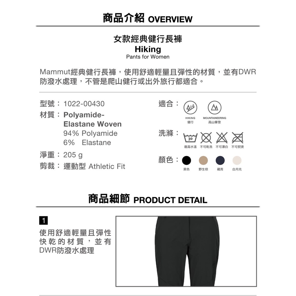 [出清] Mammut長毛象 瑞士 HikingPants 女 登山健行休閒長褲 野生棕 1022-00430