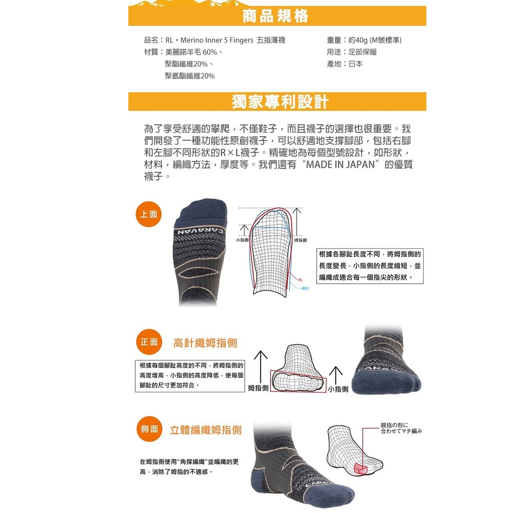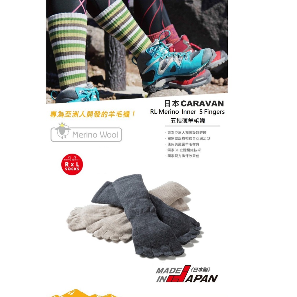 Caravan 日本 兩色 RL.MerinoInner 5Fingers 中性 五指襪 羊毛 0131005