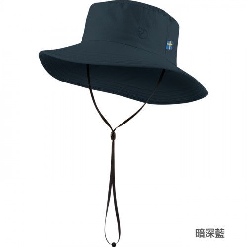 以透氣彈性布料所製成的寬帽簷遮陽帽,適合在溫暖陽光氣候的健行穿戴,寬帽簷的遮陽設計能讓保護臉部頸部與耳朵,下巴帽帶可調整長度固定帽子防止風吹,帽子正面有Fjällräven電繡logo。