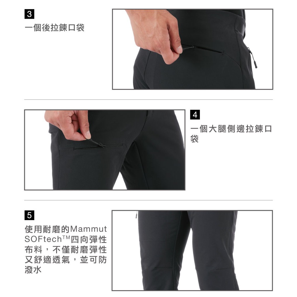 5.使用耐磨的Mammut SOFtechTM四向彈性布料,不僅耐磨彈性又舒適透氣,並可防潑水