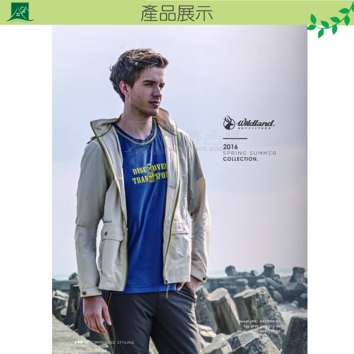 Wildland荒野 台灣 男 仿棉感圓領印花上衣 透氣 排汗 藍 淺綠 0A31612