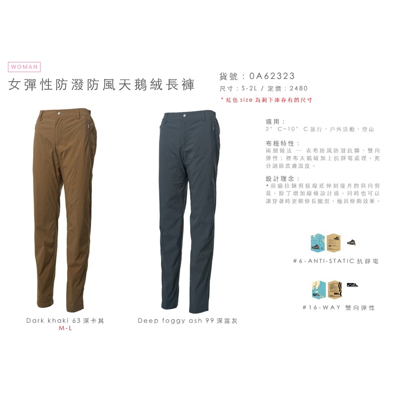 Wildland荒野 台灣 女 彈性防潑防風天鵝絨長褲 保暖休閒長褲 抗髒 霧灰 深灰 0A62323