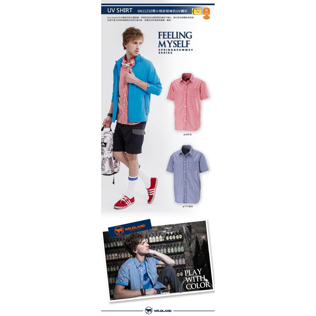 Wildland荒野 台灣 男 小格紋短袖抗UV襯衫 吸濕排汗 防曬 中藍 0A11210