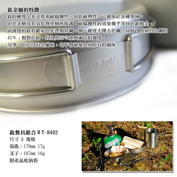 EPIgas 日本 鈦餐具組合 匙叉組 野炊 露營 登山 旅行 鈦金屬 T-8402
