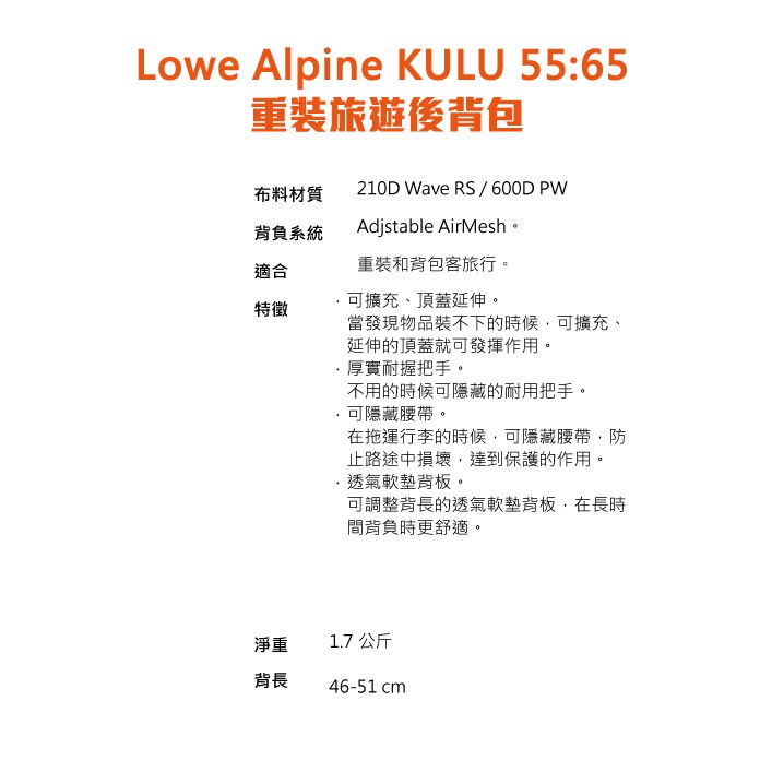 Kulu是每個背包客一直在等待的後背包,結合所有旅行包的優點,新專利Travel FlipBelt技術,可在使用時藏起腰帶,而防水套可以減輕運輸時行李的損壞,使旅行生活更輕鬆!