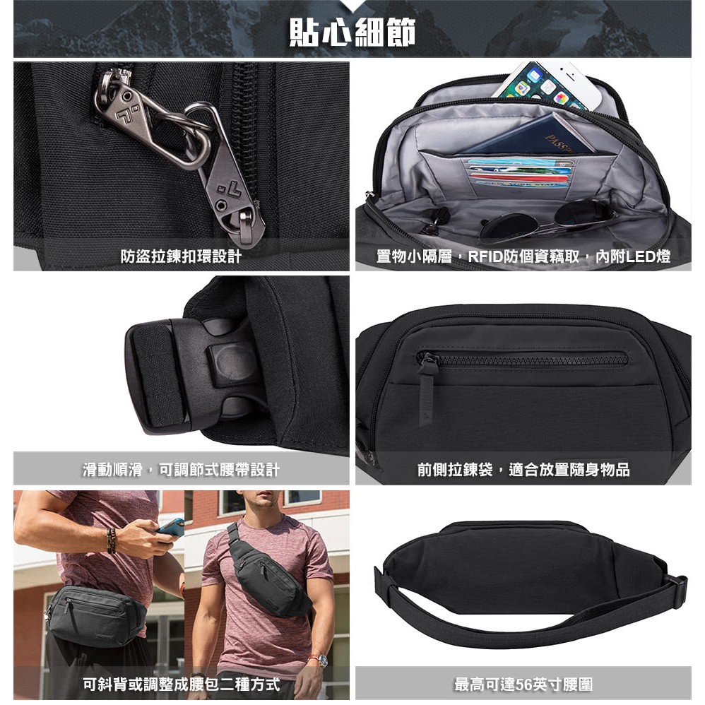 Travelon Anti-Theft Metro Waist Pack RFID防盜腰包 TL-43418
