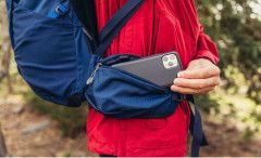 臀帶採全包式設計,與背板連接處設置彈性布料,讓背包能隨著行進間移動而貼合身體。