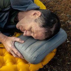 (專業提示:將睡墊充氣幫浦的充氣袋翻過來,即可看到一個尺寸與 Aeros 枕頭的 mini-XPRESS 氣閥完美搭配的噴嘴)