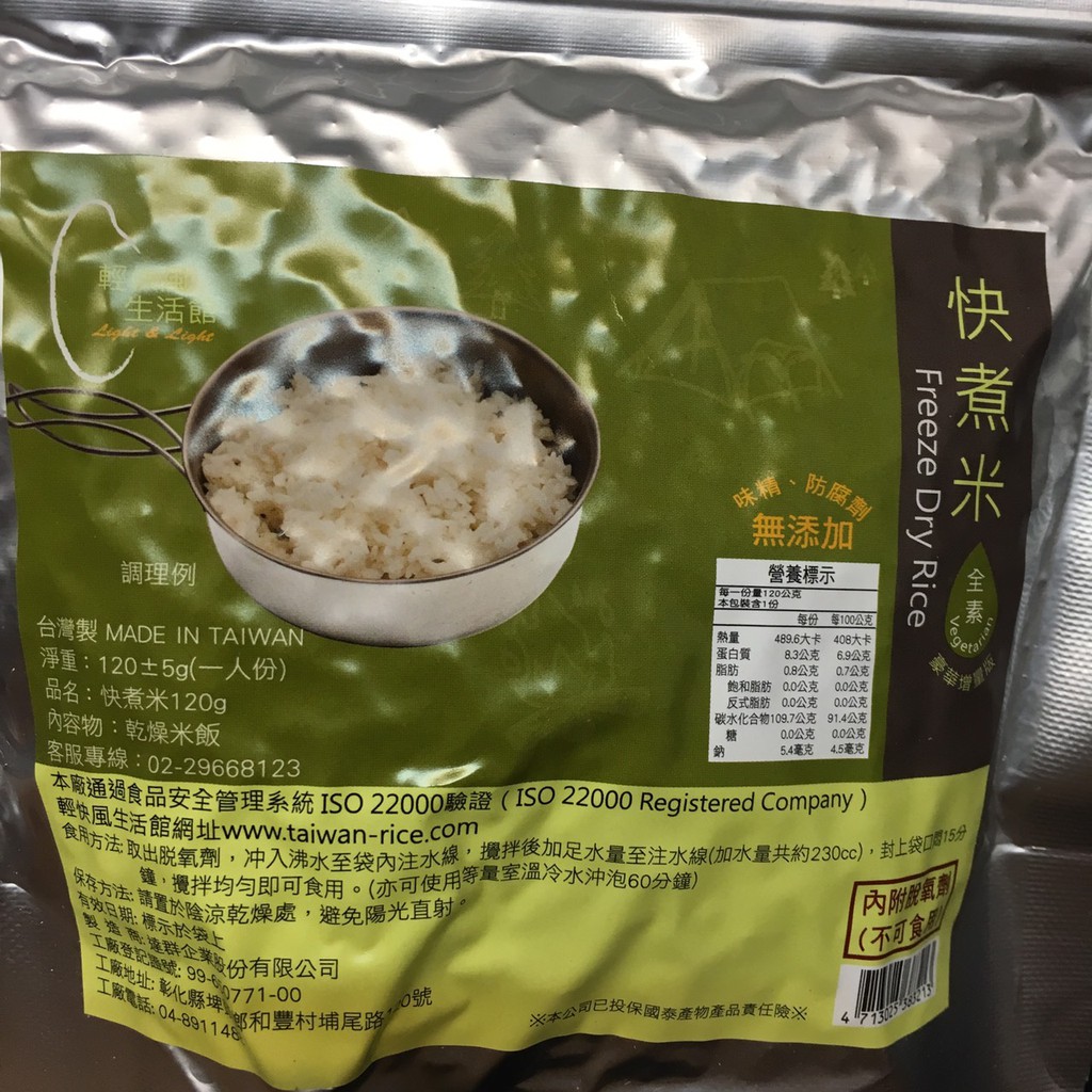 輕快風生活館 快煮米120g 400g 乾燥飯 速泡飯 沖泡飯 登山 露營 背包客 救難 求生包 速泡飯 旅遊 綠野山房 - 綠野山房戶外用品-登山|露營|旅遊|Brompton|機能服飾 - 綠點戶外股份有限公司