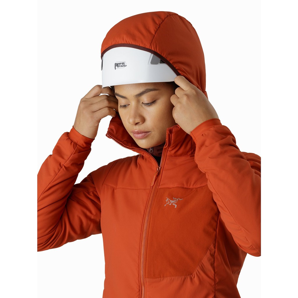 Proton LT連帽衣設有透氣保暖層,以應對山地活動的多變需求,可作為自動調節的中間層,適合各種高強度活動穿著。透氣保暖是指多餘的熱量和水分可以通過透氣面料和保暖材料的組合層。除了具有極高的透氣性,Fortius™ Air 20面料還具有無與倫比的耐磨性,在耐磨損測試中測得的耐磨性是行業標準的60倍以上。主體採用Coreloft™ Compact 80合成保暖材料,具有優異的彈性回复性能。No Slip Zip™防滑拉鍊可防止主拉鍊自動滑開,頭盔兼容保暖兜帽可提供額外保暖。穿上它,把注意力放在活動